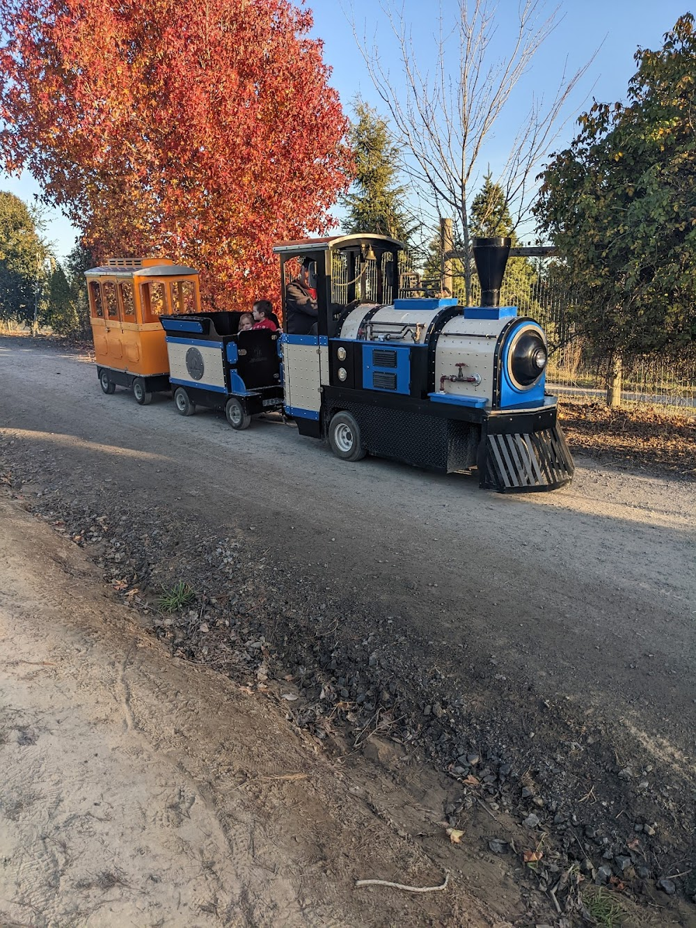 - Features a colorful train ride, a petting zoo with farm animals, and weekend visits from Santa.